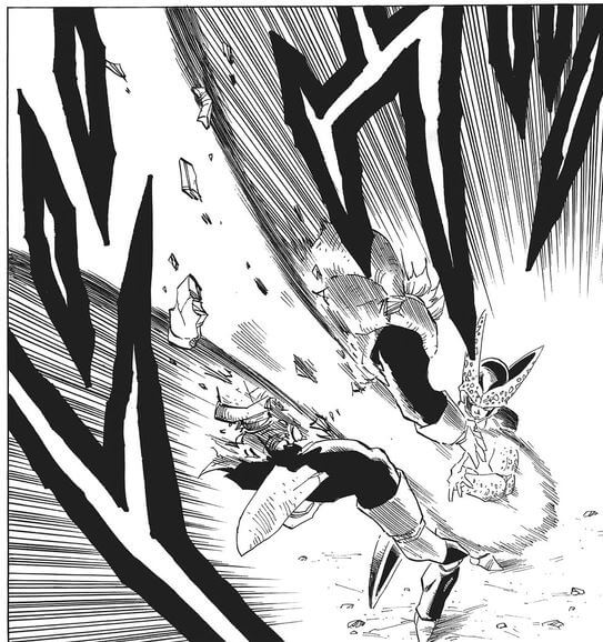 セルに押される17号に逃げるよう忠告するも、17号は聞き入れない。