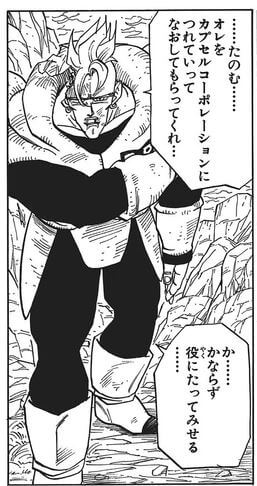 クリリンに、自分をカプセルコーポレーションで直して貰うよう頼む。